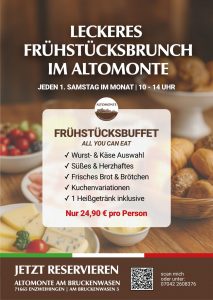 Frühstücksbrunch im Altomonte – Jeden 1. Samstag im Monat · All you can eat · 24,90 €
